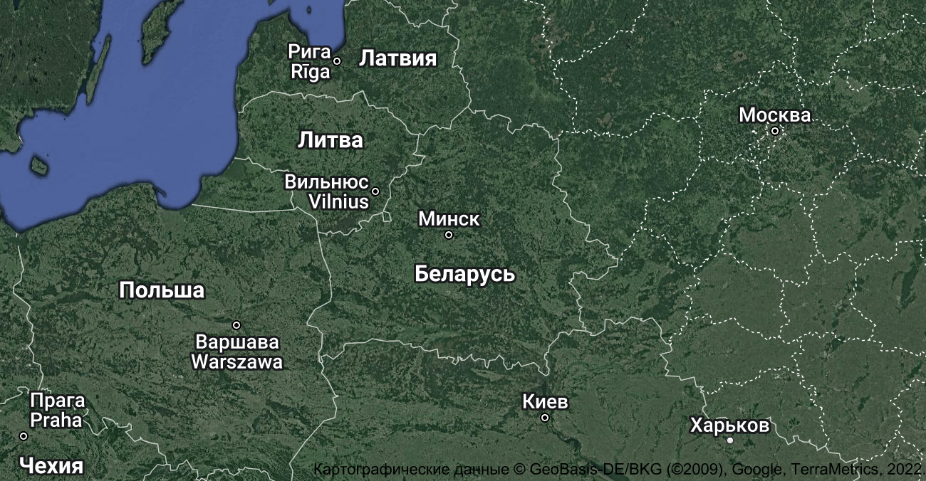 Беларусь граничит с пятью государствами: на западе – с Польшей, на северо-западе – с Литвой, на севере – с Латвией и Российской Федерацией, на северо-востоке и востоке – с Российской Федерацией, на юге – с Украиной. Общая протяженность государственной границы составляет 3617 км Расстояние от Минска до ближайшей столицы соседних стран – литовского Вильнюса – 215 км. Латвийская Рига находится в 470 км от Минска, польская Варшава – в 550 км, украинский Киев – в 580 км, от белорусской столицы до российской – Москвы – 700 км.
