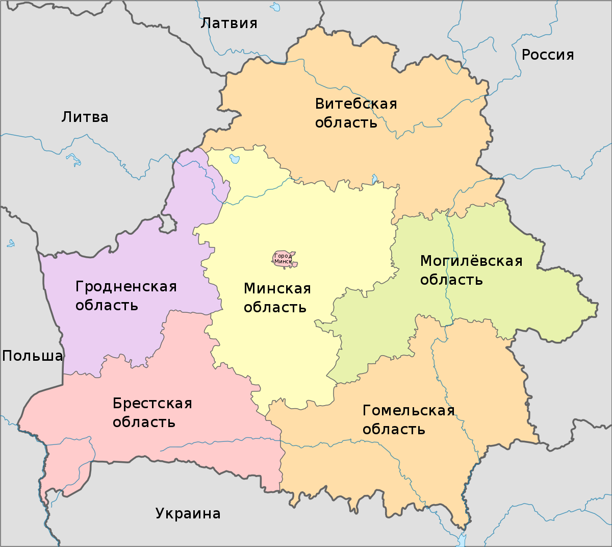 Республика Беларусь делится на 6 областей, которые, в свою очередь, делятся на районы и города областного подчинения. Общее число районов во всех областях составляет 118, а городов областного подчинения — 10. Город Минск является самостоятельной административной единицей, которая не входит ни в одну область и имеет деление на внутренние районы, как и ряд городов областного подчинения.