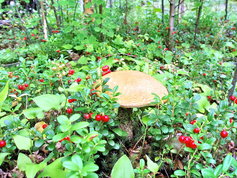 Леса Беларуси богаты в том числе грибами и плодово-ягодными растениями. Среди съедобных грибов часто встречаются лисички, подосиновики, подберезовики, масленки, грузди, белый гриб, волнушки, сыроежки. При этом зафиксировано около 38 видов несъедобных и ядовитых грибов. Плодово-ягодные растения представлены в первую очередь черникой и клюквой. Также растут голубика, брусника, рябина, калина, малина.