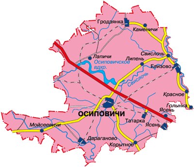 Город Осиповичи является административным центром района, расположен в 100 км от г.Минска и представляет собой достаточно крупный железнодорожный и промышленный узел.